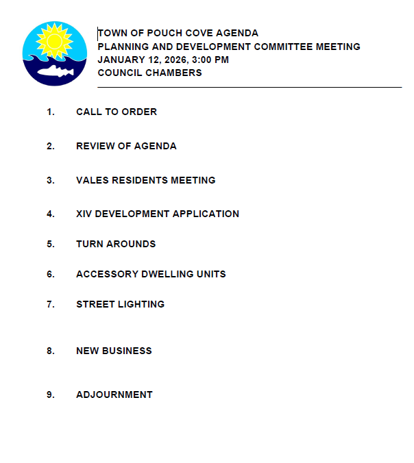 Planning and Development Committee Meeting 1 hour Monday, January 12, 2026 3:00pm Council Chambers 660 Main Road Home Planning and Development Committee Meeting